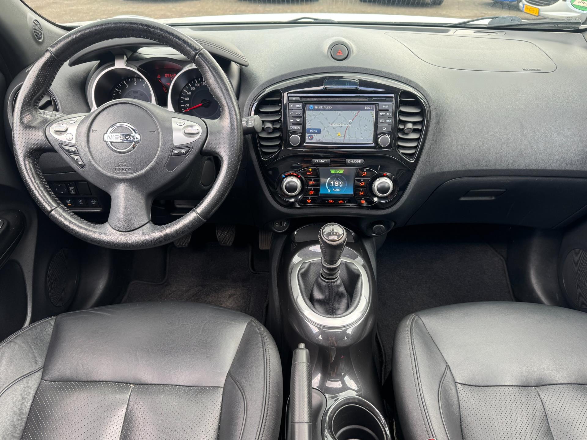 Nissan Juke 1.2 DIG-T S/S Tekna in uitstekende staat en afkomstig van de eerste eigenaar Deze stoere en sportieve crossover is voorzien van een krachtige en zuinige 1.2 DIG-T benzinemotor met start-stop systeem wat zorgt voor dynamisch rijgedrag en efficiënt brandstofverbruik De Tekna-uitvoering staat bekend om zijn rijke uitrusting en luxe afwerking
